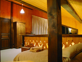 The lounge on the first floor has comfortable seating for twelve, with a dining area with a large custom designed sapin monastery table with twelve ash dining chairs so that all the chalet guests can sit comfortably around one table for pleasant sociable meals. Everyone can then retire to the leather sofas and the massive armchairs for the remainder of the evening.